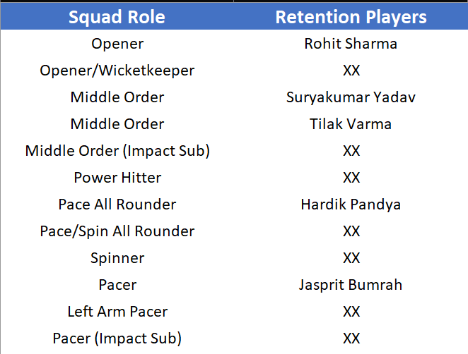 Mumbai Indians Squad Role - Potential Buys and Prices